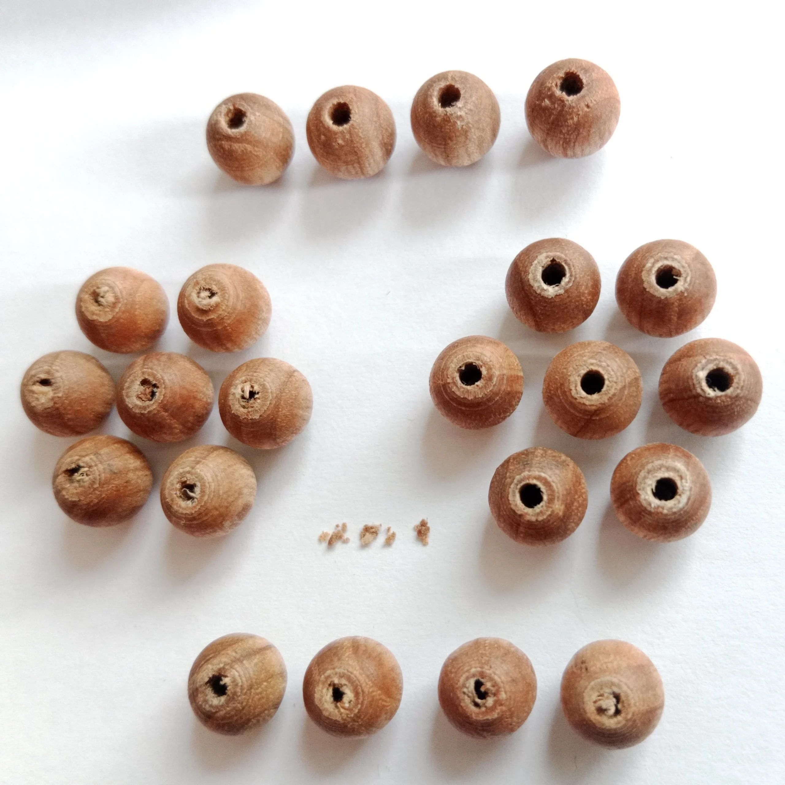 - d'autres perles locales en bois de hêtre, charme, olivier, frêne ou chêne