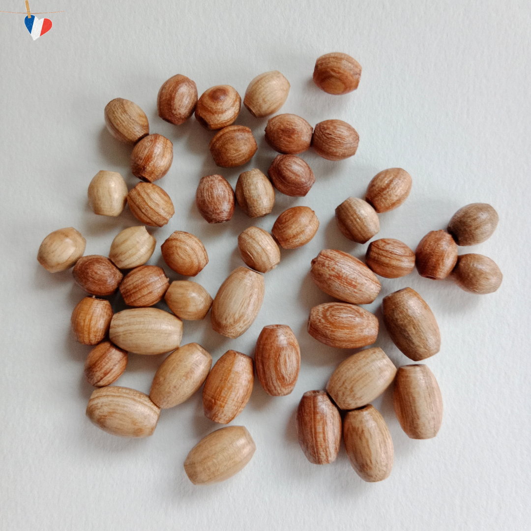 Perles en bois de frêne de forme ovale de 8mm, fabriquées en France à partir d’un bois revalorisé